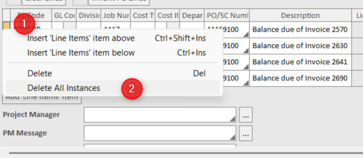 3. Ensure all line items is deleted, by right clicking on the first column of the table and select "Delete all Instances"
